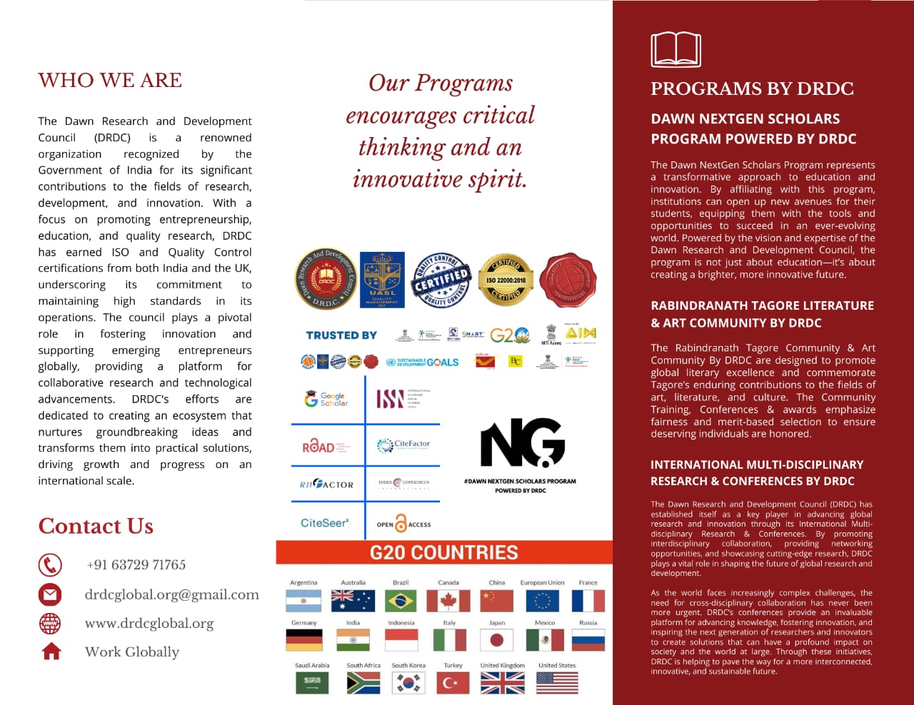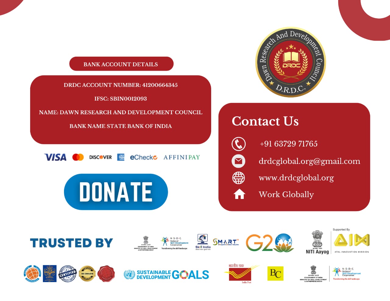 Dawn Research and Development Council (DRDC) Recognised By Government Of India And Got ISO and Quality Control Certification From India & UK Promoting Entrepreneurship, Education, Research & Innovation. Worldwide.
